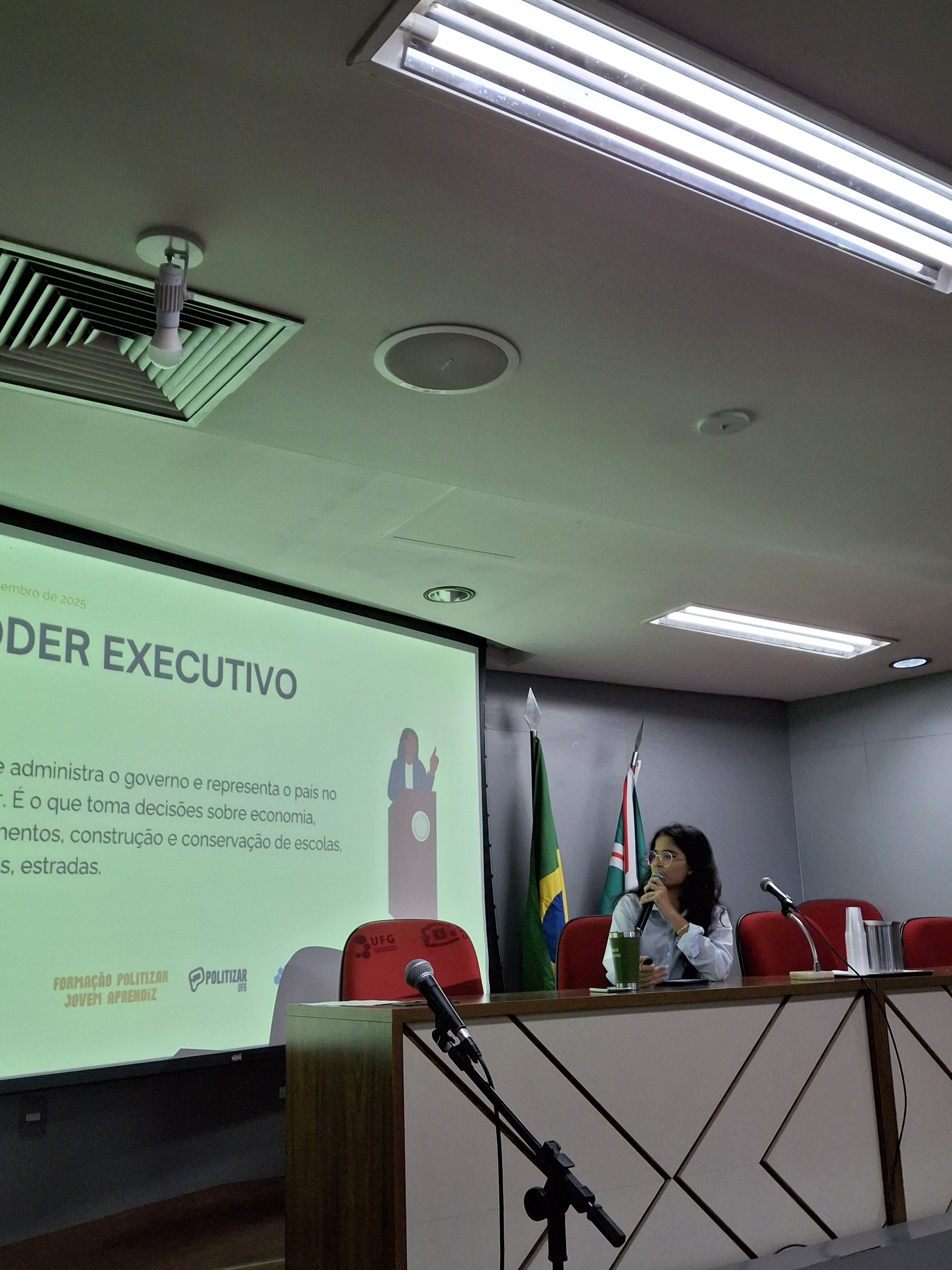 A programação teve início com a apresentação institucional do Politizar, conduzida pela membro da equipe Bianca Prazeres, que explicou a história, os propósitos e o funcionamento do projeto.