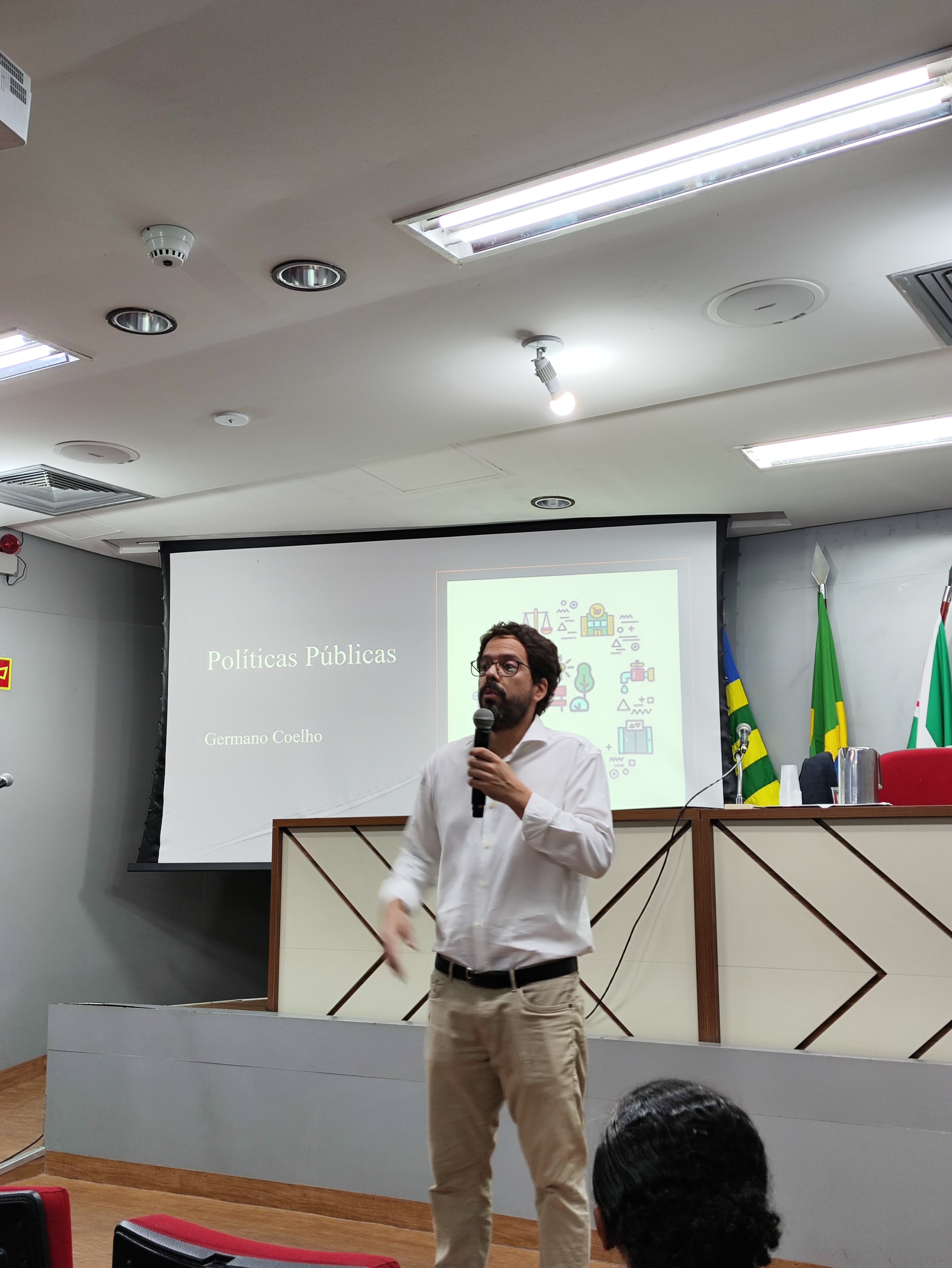 O segundo dia começou com o curso Políticas Públicas, ministrado pelo Prof. Dr. Germano Araújo, que apresentou conceitos fundamentais para compreender como políticas públicas são formuladas, implementadas e avaliadas.